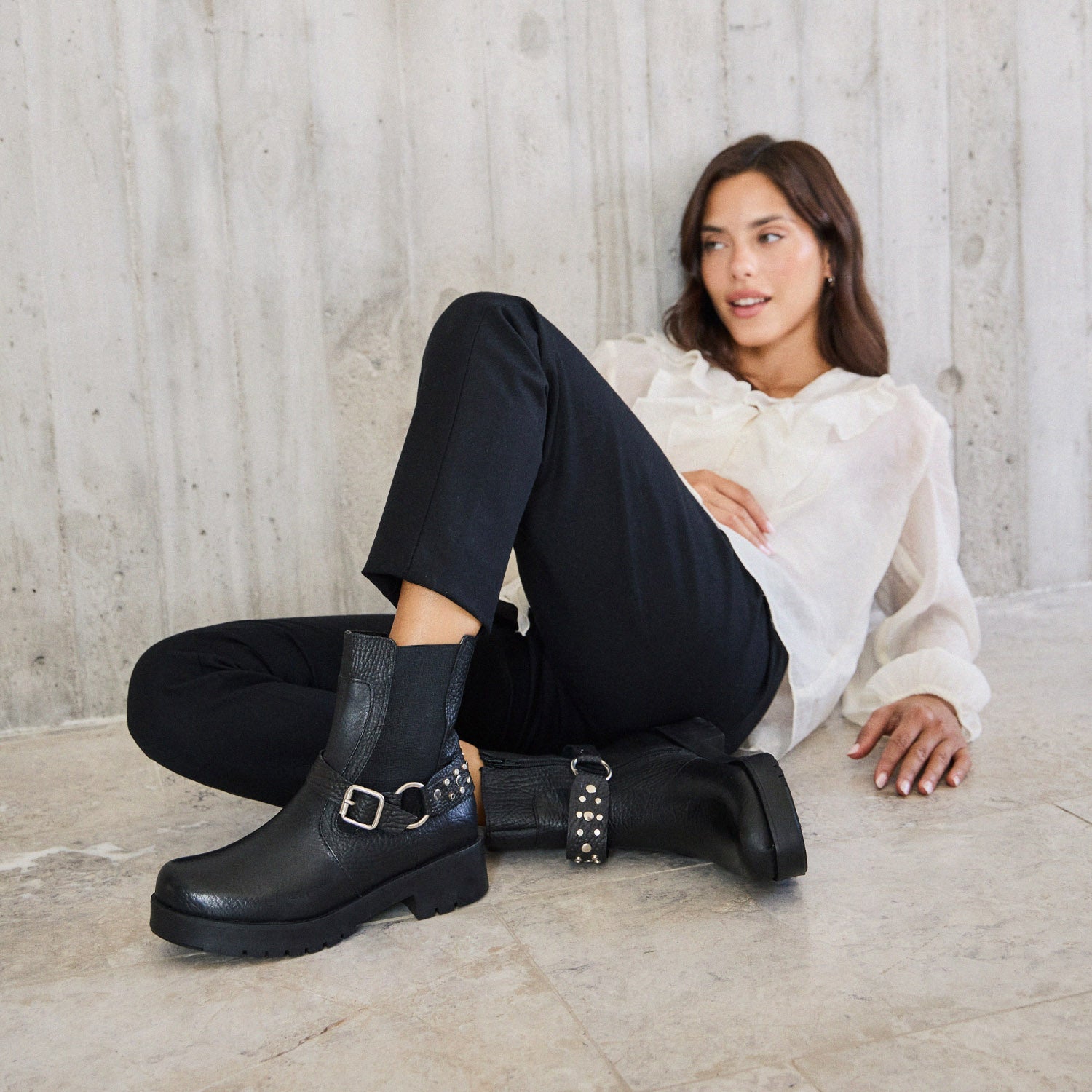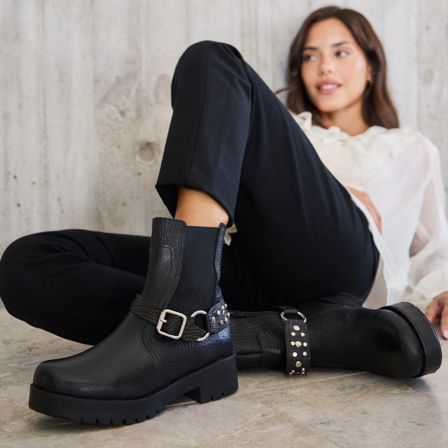 Pisa fuerte y marca el ritmo con Bernard. Confeccionada en cuero, esta bota combina elegancia y actitud con un diseño versátil que se adapta a cualquier ocasión. Incorpora una pulsera desmontable que permite transformar el look según el momento, sumando personalidad cuando lo buscás o dejando un estilo más limpio y clásico. Su cierre lateral y elástico aseguran un calce cómodo y preciso, mientras que la base antideslizante brinda seguridad en cada paso. Un toque de sofisticación con aire urbano que eleva cualquier conjunto.