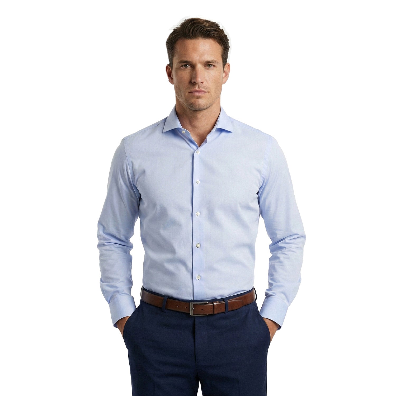 Camisas de hombre fabricadas con algodón de primera calidad de color celeste.