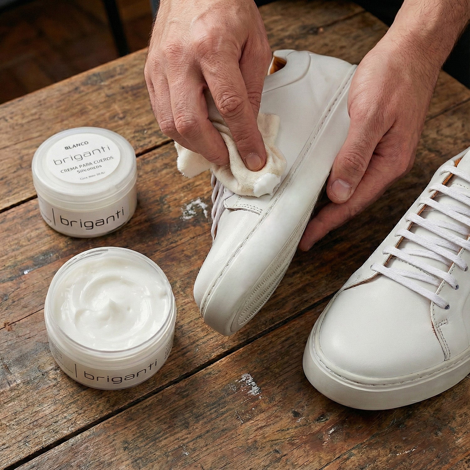 Beneficios: limpia, protege y mantiene el cuero blanco.