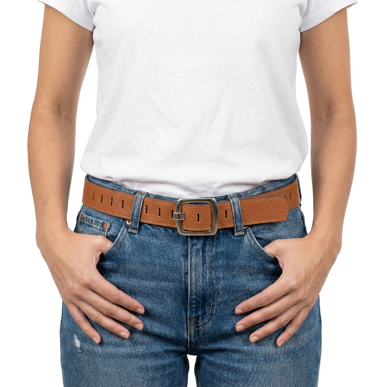 Eleva tu estilo con el Cinturón Anca, que te hará sentir segura y a la moda. Confeccionada en cuero de primera calidad, este modelo cuenta con herrajes de acero inoxidable y con costuras reforzadas. ¡No te lo podes perder!