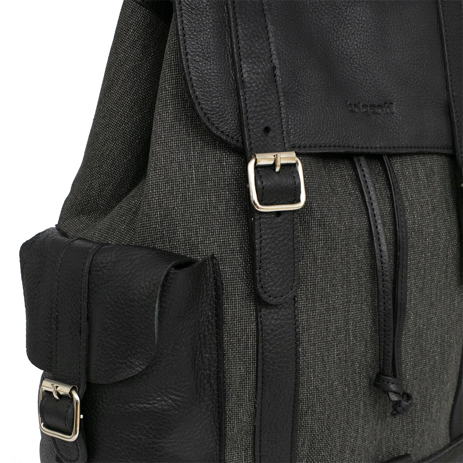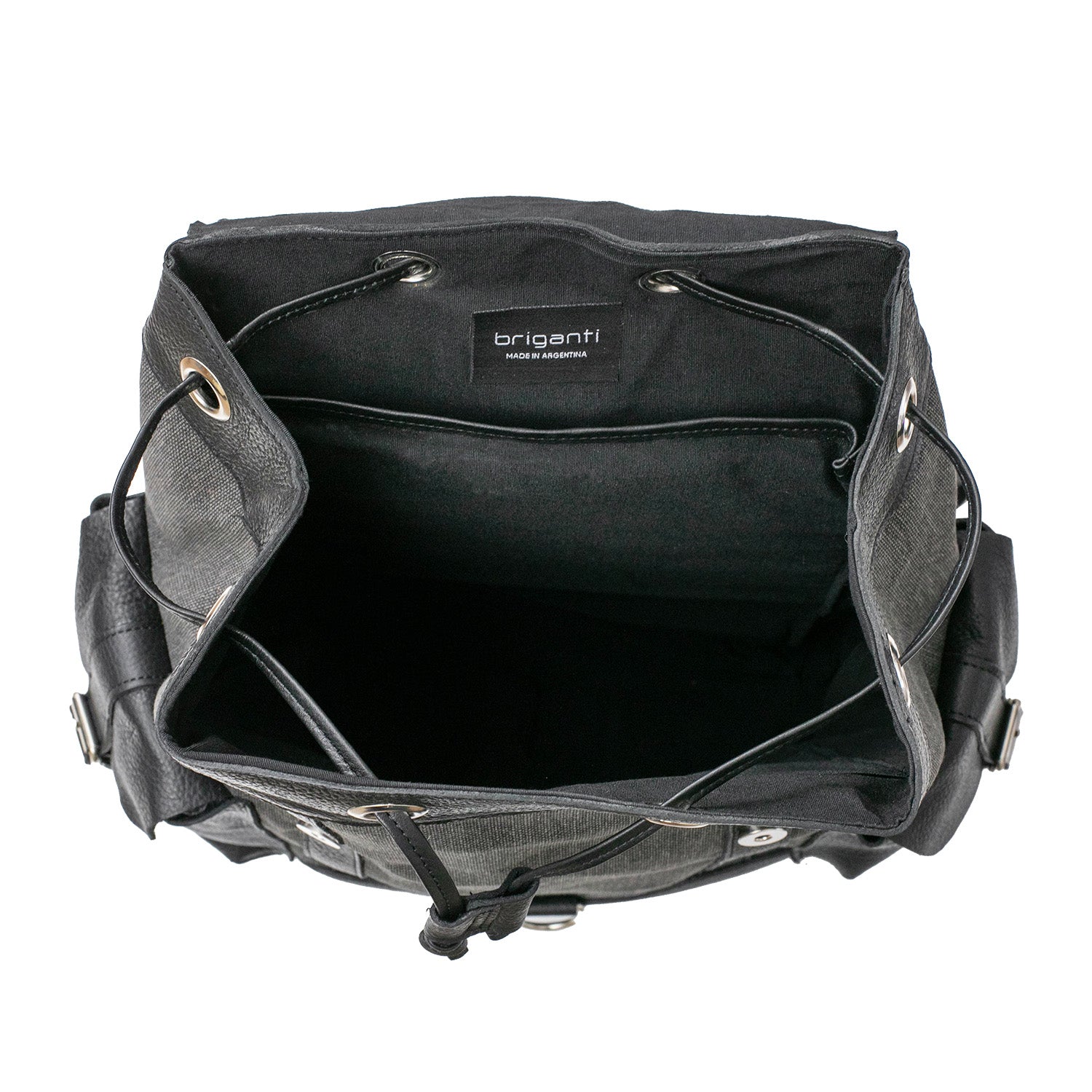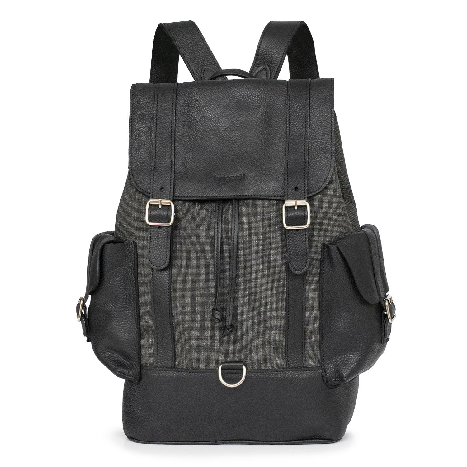 Mochilas Sutera fabricadas con tela y cuero de primera calidad. Cuentan con división con botón imán, un bolsillo interno, un bolsillo externo con cierre y dos sin cierre y correa regulable. Una mochila ideal para llevar todo lo que necesites a la oficina o a la facultad.