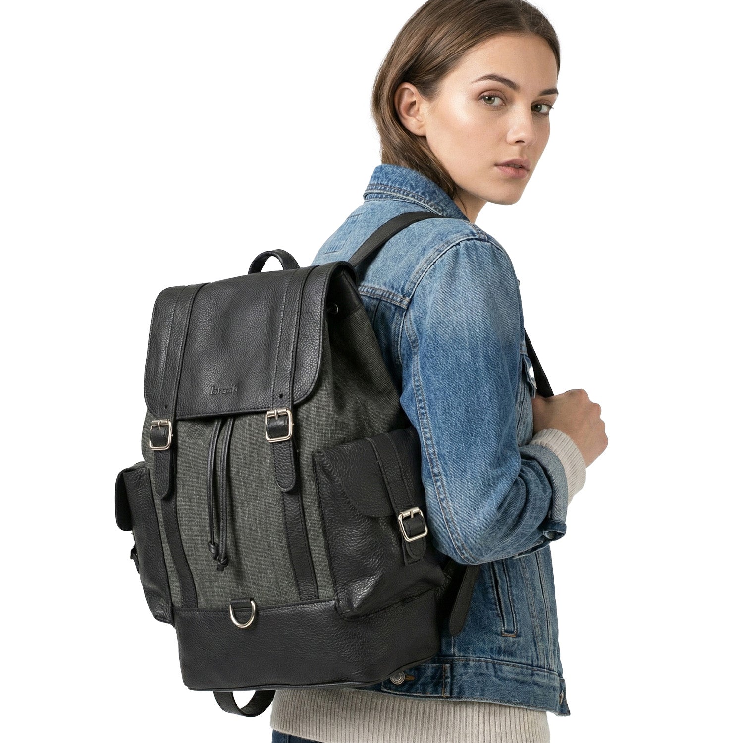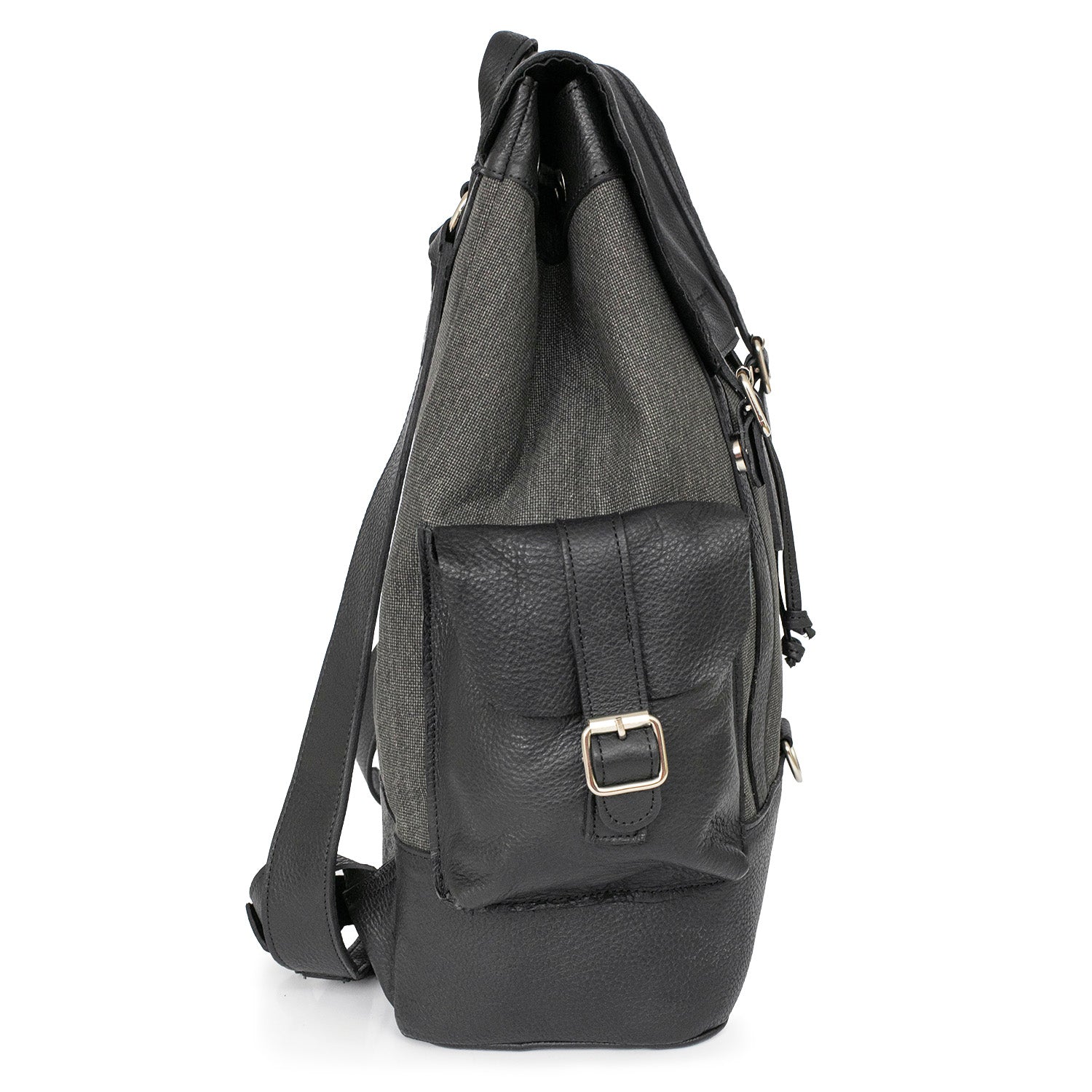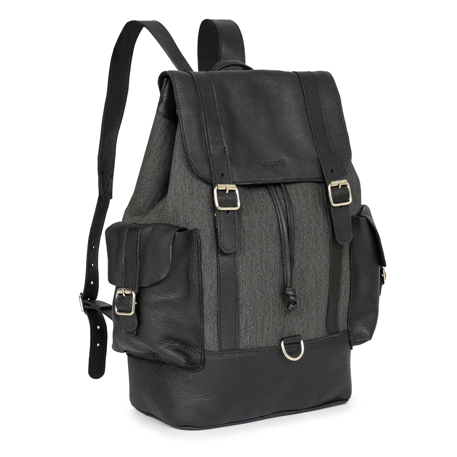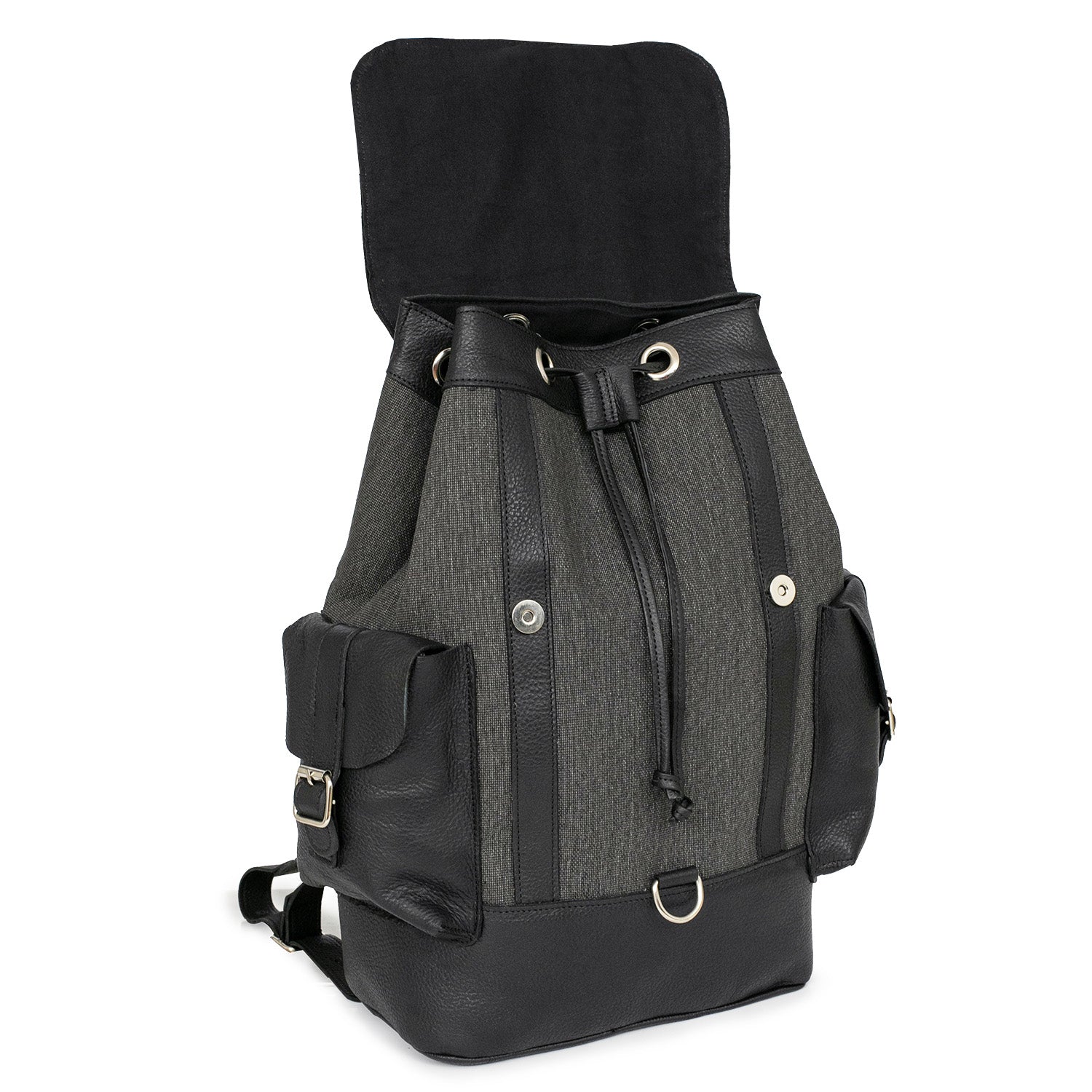 Mochilas Sutera fabricadas con tela y cuero de primera calidad. Cuentan con división con botón imán, un bolsillo interno, un bolsillo externo con cierre y dos sin cierre y correa regulable. Una mochila ideal para llevar todo lo que necesites a la oficina o a la facultad.
