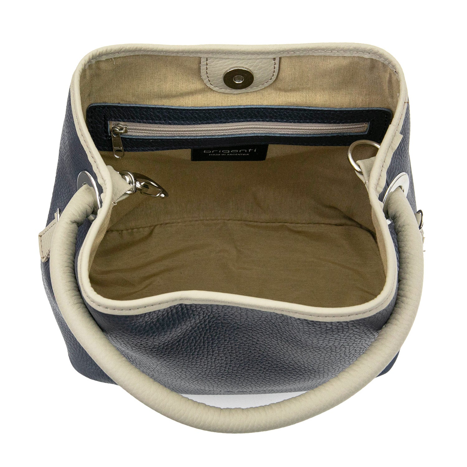 • Detalles: Bolsillo principal con botón imán
